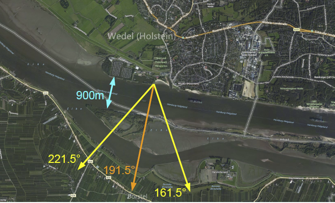 Viewing Directions of the Wedel MAX-DOAS instrument towards the river Elbe [Image source: http://www.bing.com/maps/ (01.04.2014)